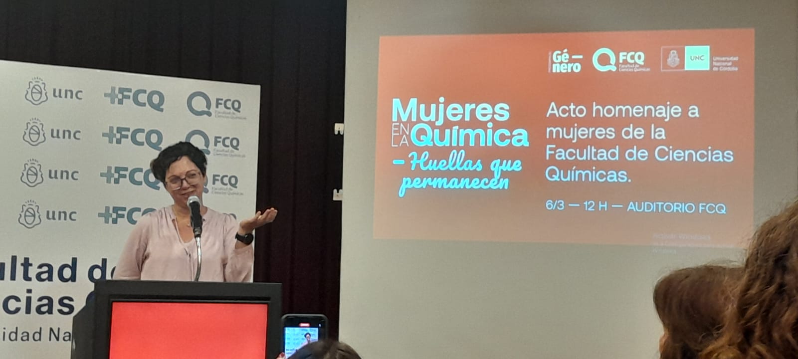 La Dra. Fabro, integrante del DQBRC-FCQ, participó del acto homenaje a mujeres de la FCQ en el marco del 8M bajo el lema: huellas que permanecen.